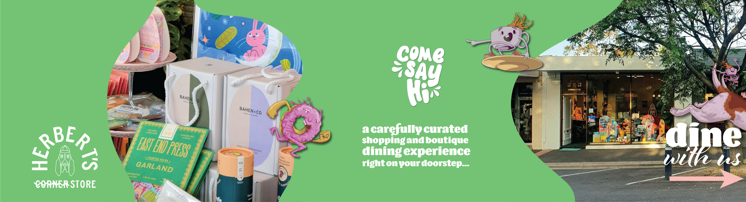 Herbert's Corner Store is the little brother of 2B1B and is the namesake of our newest Bloodhound addition. Herbert's is a boutique gift store selling a range of "fancy knick-knacks and snacks" sourced both locally and overseas with an emphasis on small business, handmade goods and small batch produce. We endeavour to source the QUIRKIEST, COOLEST & FUNNEST GOODS around!