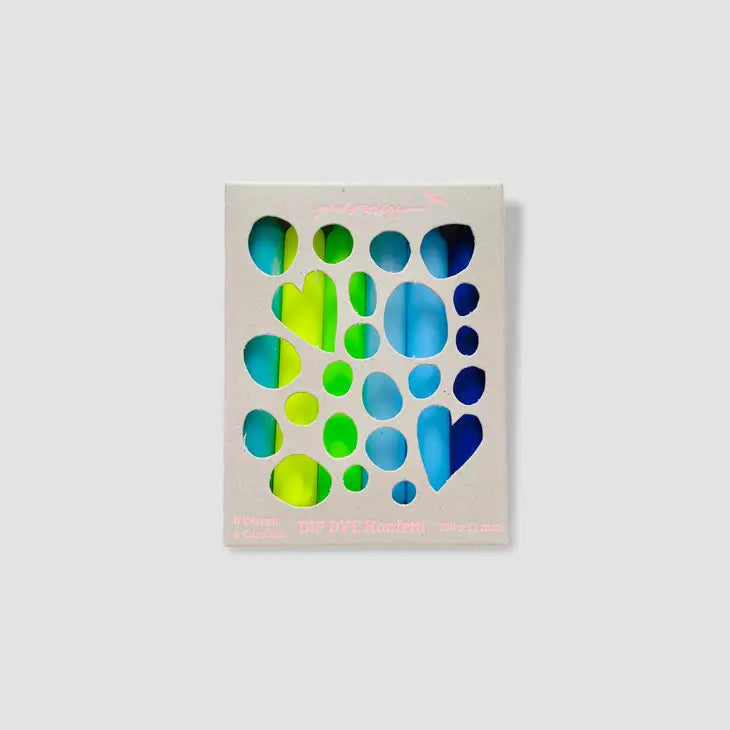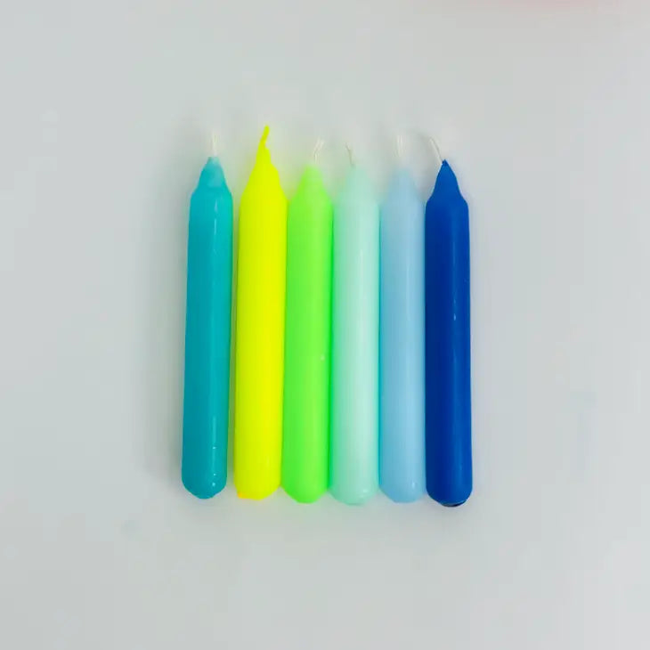 Set of six lovingly hand-dyed birthday candles in neon look. The colors remain the same, the pattern gradients vary with each candle and make them unique.