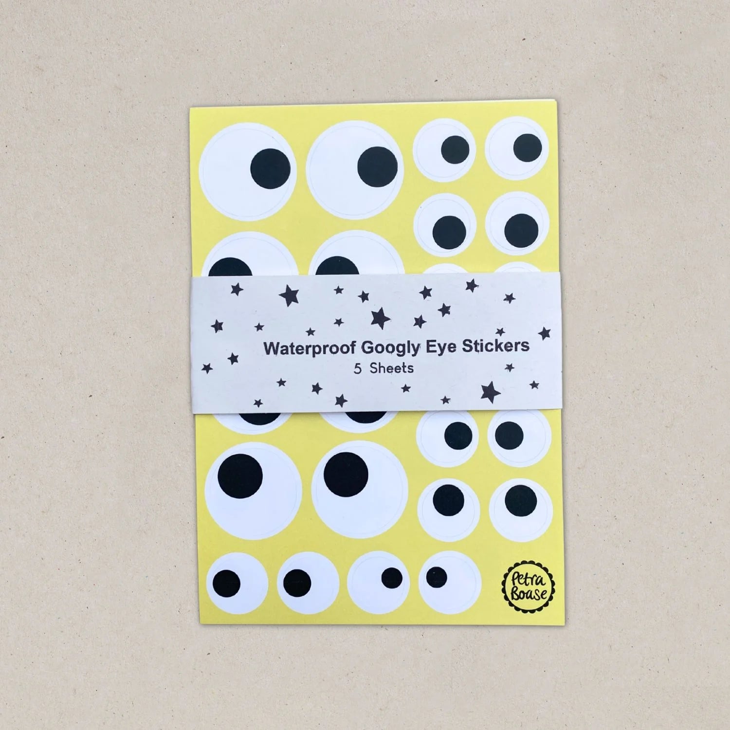 Pack contains 5 sheets of waterproof Matt Vinyl googly eye stickers.