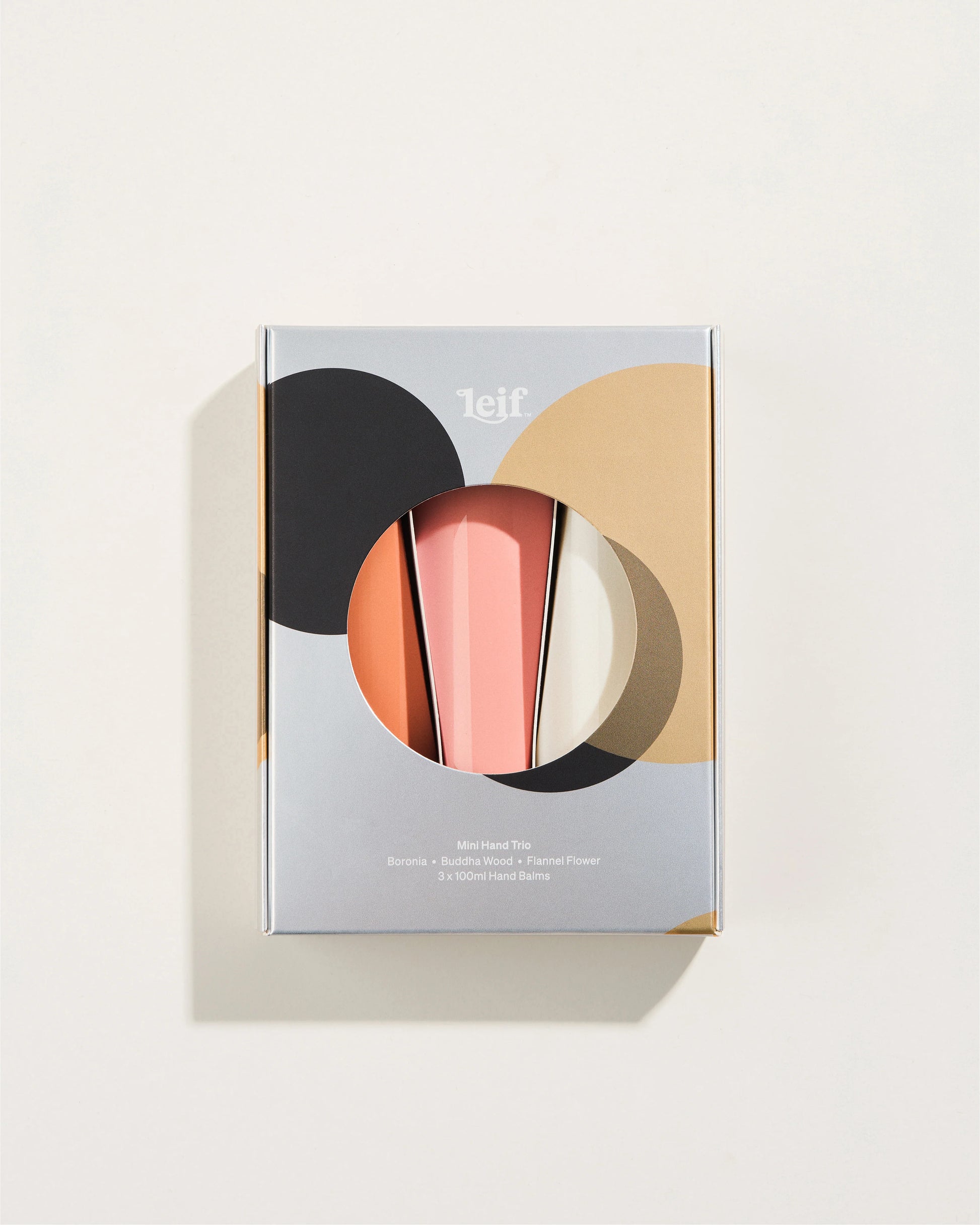 Boronia, Buddha Wood and Flannel Flower 100mL Hand Balms come together as one, reimagined with the conceptual artwork of Sydney-based artist Mark Gowing.
