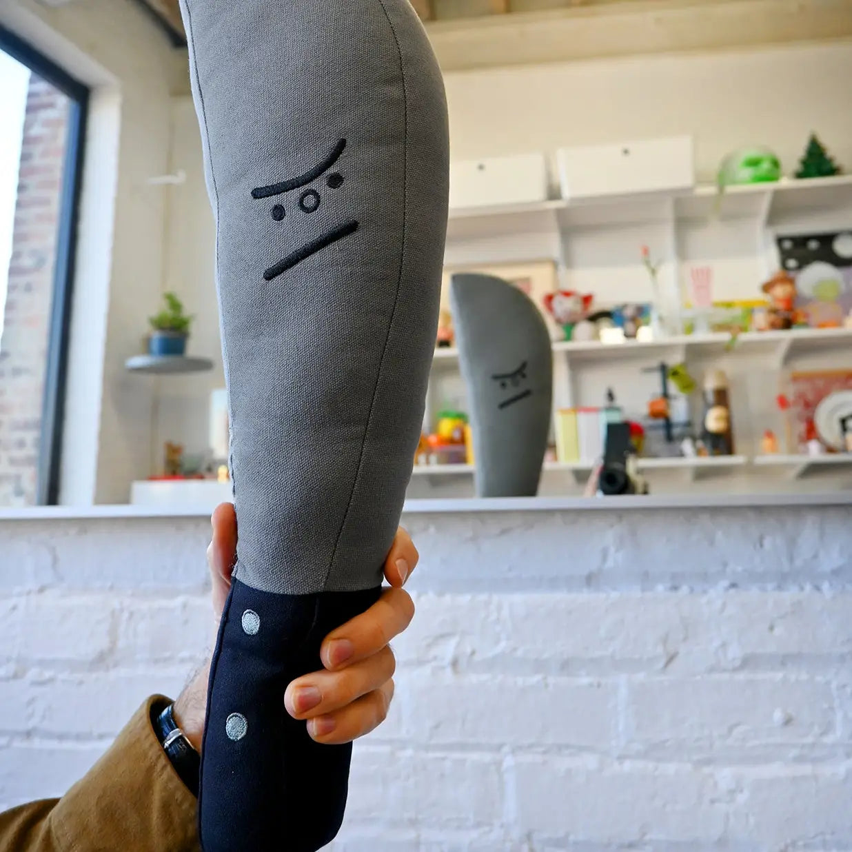 Say hello to your grumpy friend! Finally, a machete that's safe to throw around and hug. Machete measures 20"X 4.5"X 5.5". Featuring embroidered grump face on both sides. Fully stitched-up 100% cotton duck pillowcase with fluffy stuffing. ✧CARE: -Spot clean only.