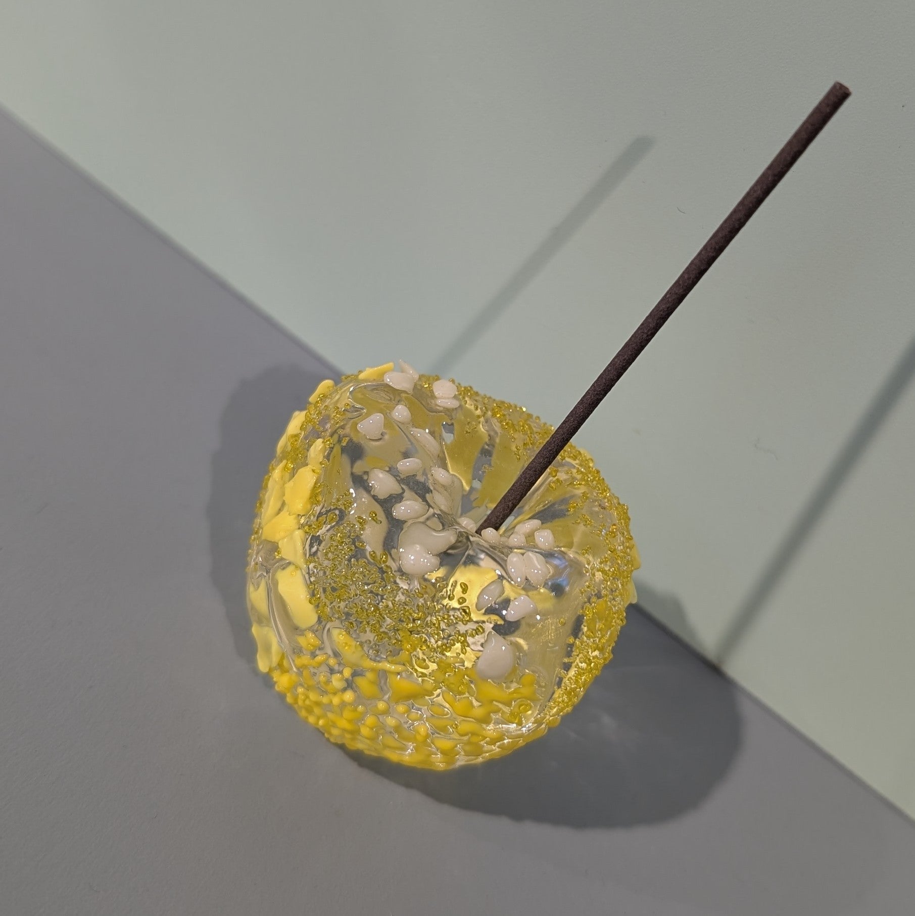These handmade Pebble incense holders are a pleasure to look at whether you have incense burning or not. The heavy glass with decorative elements is perfect for those longer incense sticks. The small size allows you to easily store it away if you don't need it out at all times.