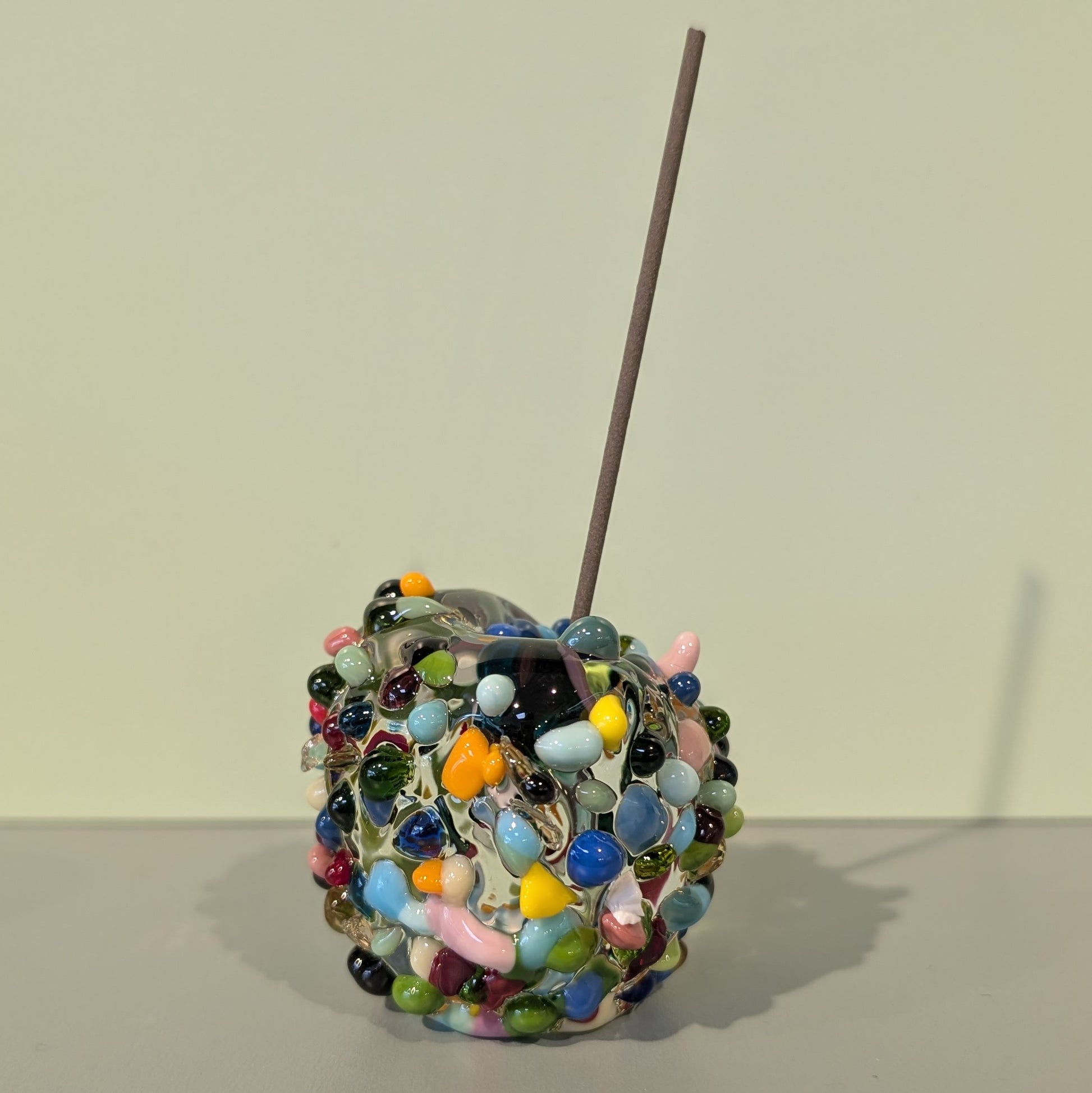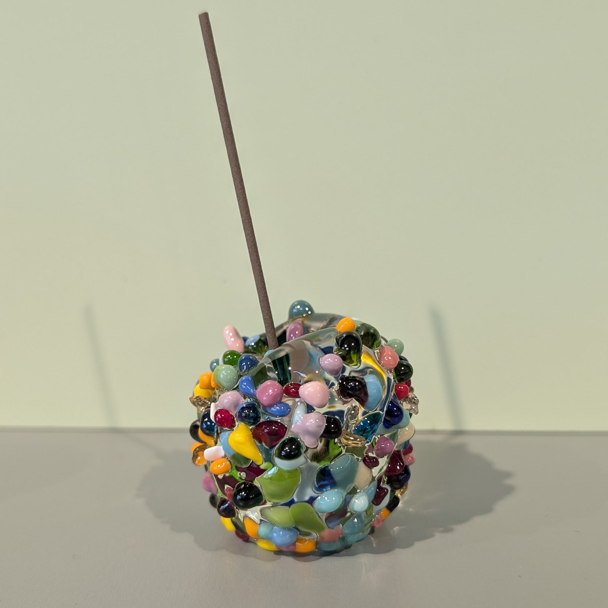 These handmade Pebble incense holders are a pleasure to look at whether you have incense burning or not. The heavy glass with decorative elements is perfect for those longer incense sticks. The small size allows you to easily store it away if you don't need it out at all times.