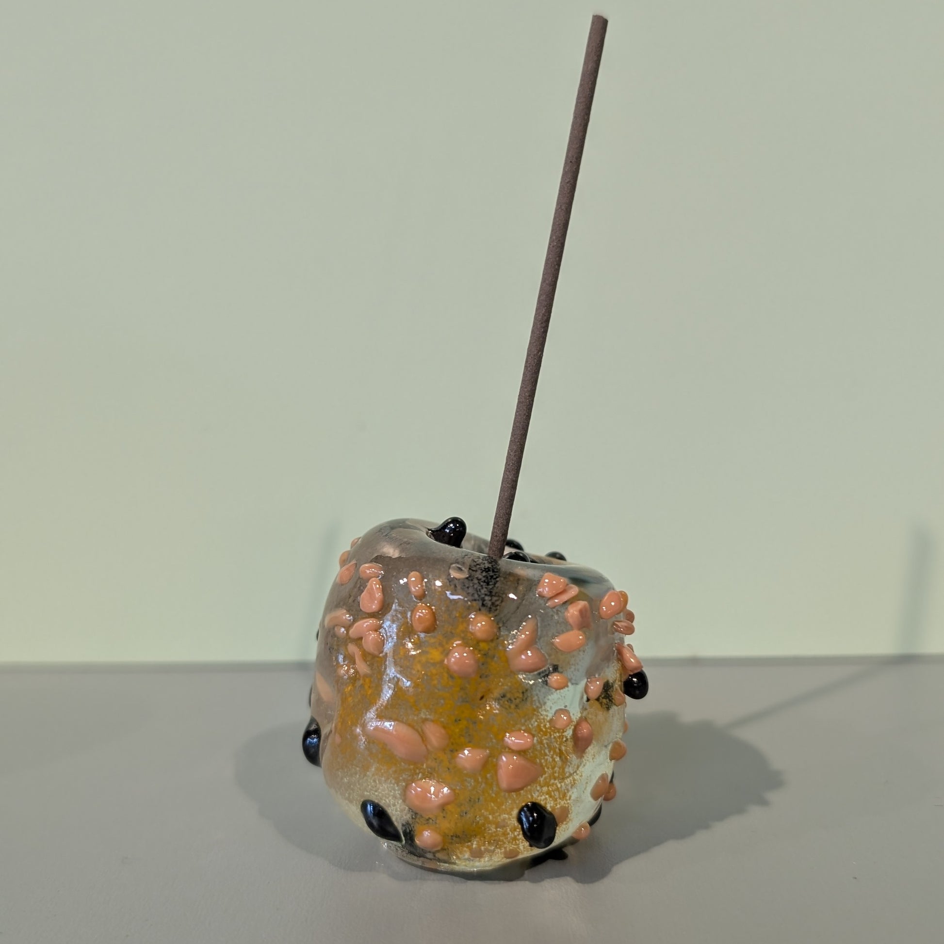 These handmade Pebble incense holders are a pleasure to look at whether you have incense burning or not. The heavy glass with decorative elements is perfect for those longer incense sticks. The small size allows you to easily store it away if you don't need it out at all times.