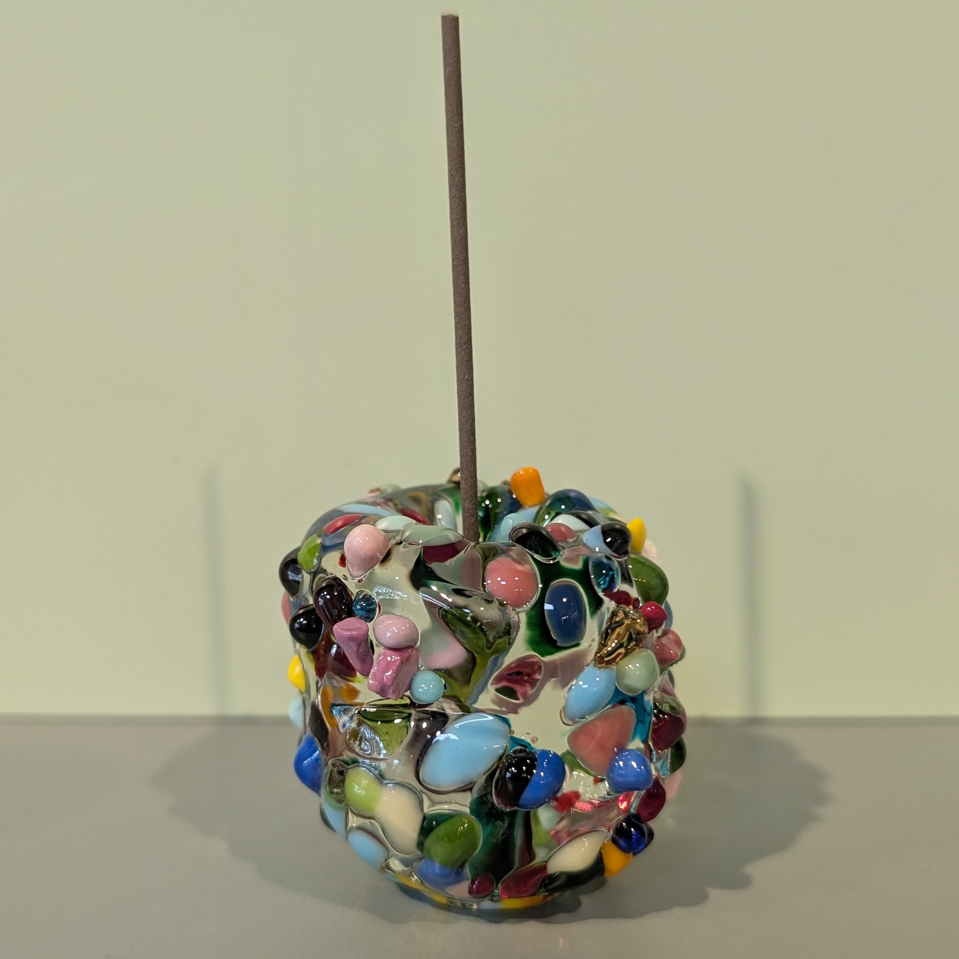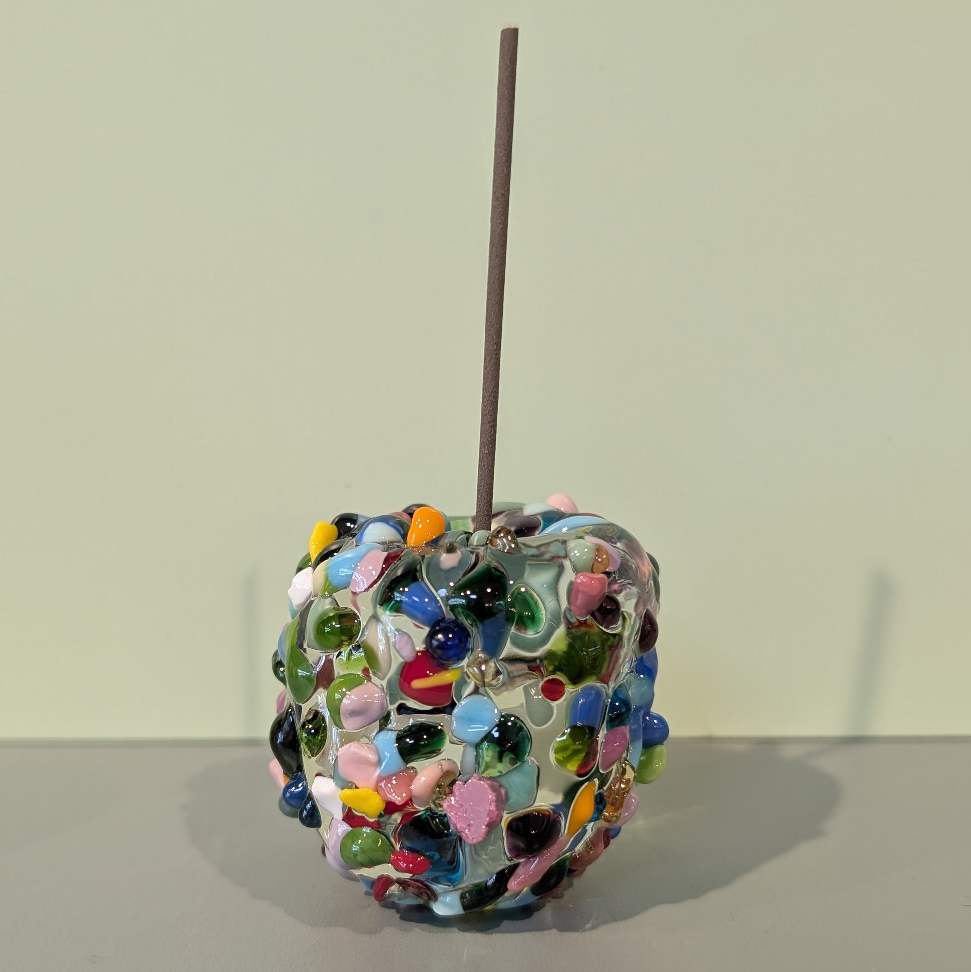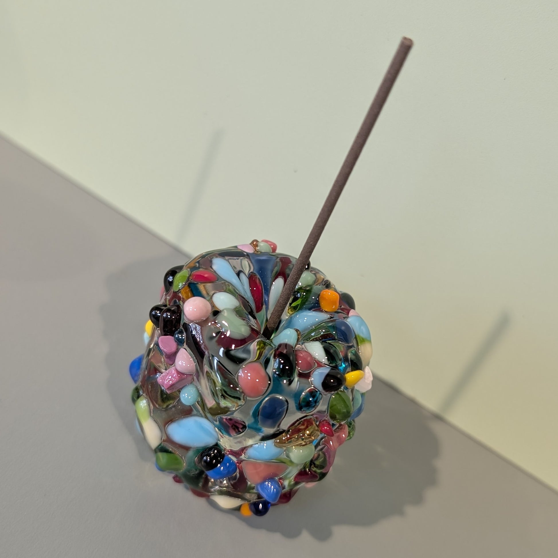 These handmade Pebble incense holders are a pleasure to look at whether you have incense burning or not. The heavy glass with decorative elements is perfect for those longer incense sticks. The small size allows you to easily store it away if you don't need it out at all times.