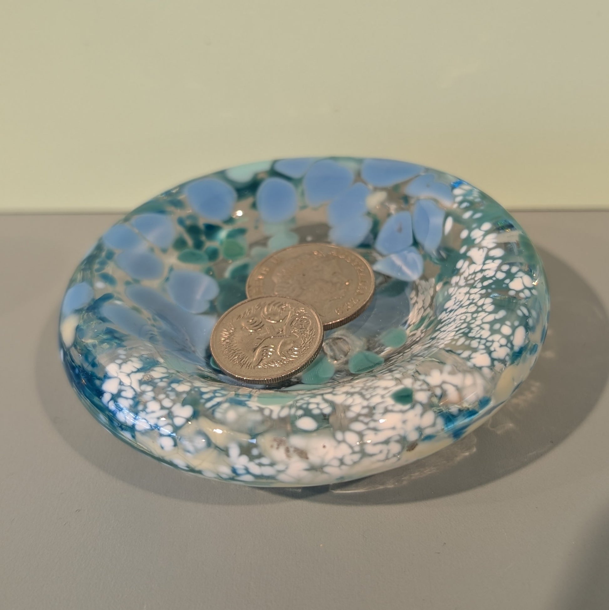 Hand formed with molten glass in the studio hot shop, the Puddle is perfect for spare change, jewellery or tiny treasures found on the shore.