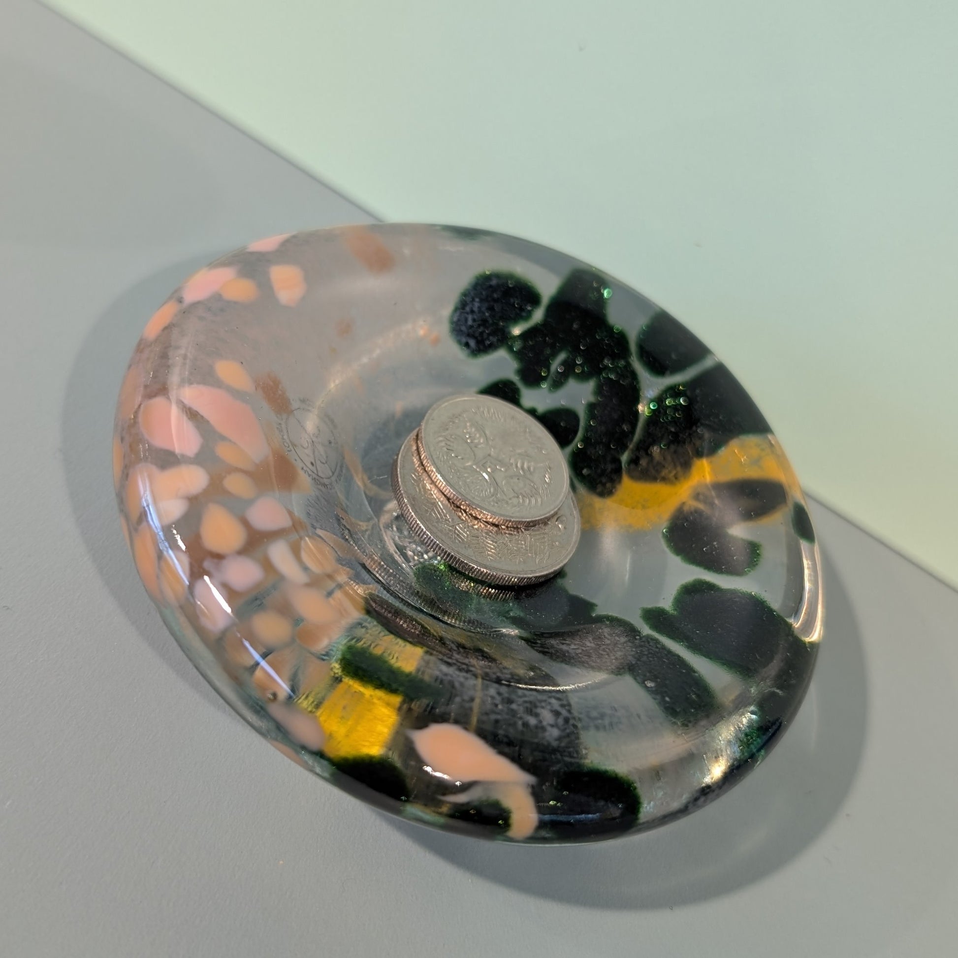 Hand formed with molten glass in the studio hot shop, the Puddle is perfect for spare change, jewellery or tiny treasures found on the shore.