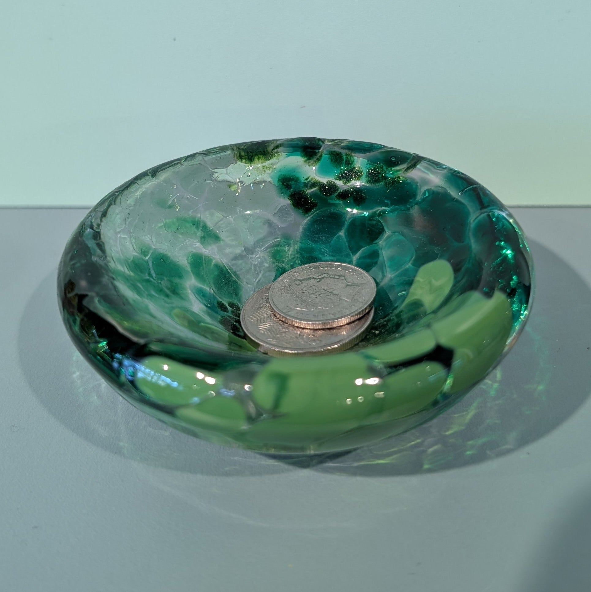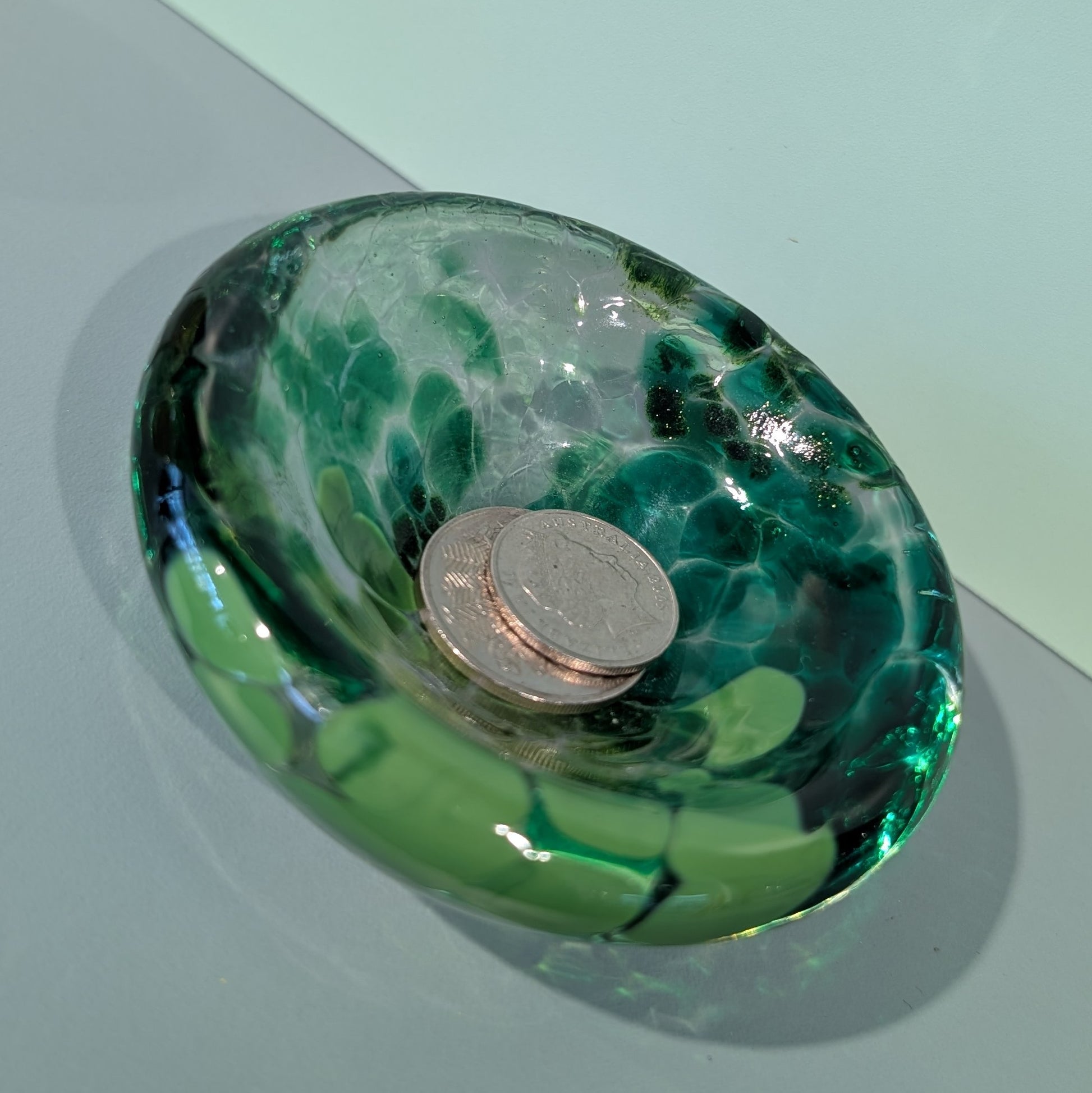 Hand formed with molten glass in the studio hot shop, the Puddle is perfect for spare change, jewellery or tiny treasures found on the shore.