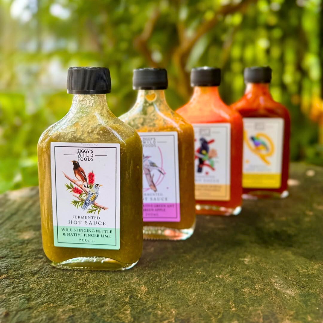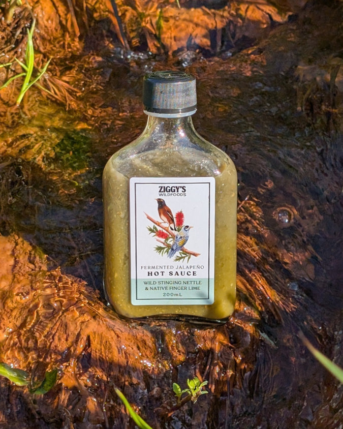 Mounds of wild stinging nettle collected over the wet wintery months, with its earthy peppery bright green tea vibes - fermented with hot green and yellow roasted chillies - local Native Dorrigo Pepper, and left alone for 2 months to create fermented flavour magic.